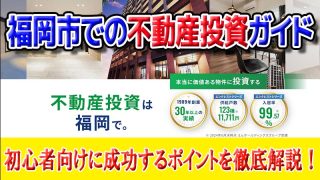 不動産 保護中: 福岡市での不動産投資ガイド|初心者向けに成功するポイントを徹底解説 福岡市の不動産投資に興味がある初心者のためのガイドです。現状の不動産市場から利回りを上げるためのコツ、投資のメリット・デメリットまで、福岡市の不動産投資に成功するためのポイントを詳しく解説します。 2024.11.09 不動産